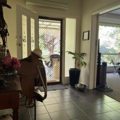 Homestead of 3 BR with 3 large living areas, office, and loads of storage. Two showers and two toilets. Heating and cooling of split systems, fans, and a free-standing wood fire for the winter months. Adjacent to the house is a one BR bungalow.